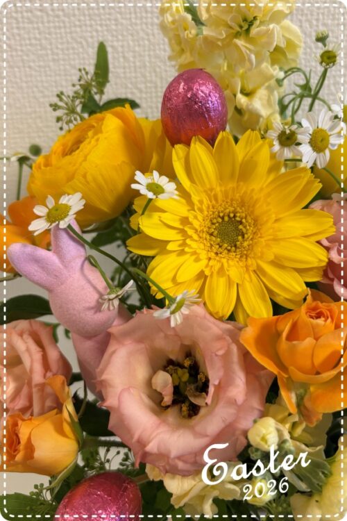 なので、3月後半のお花は、イースターアレンジメントの製作にしました。
